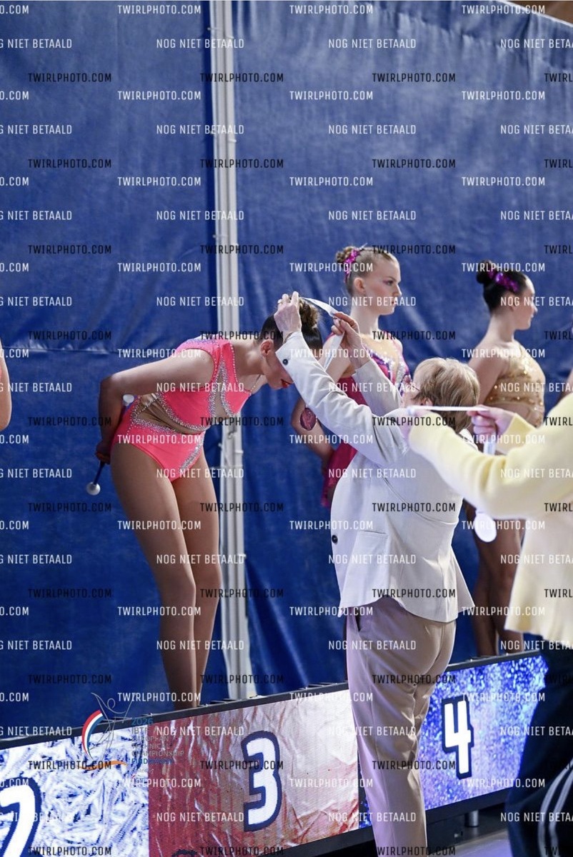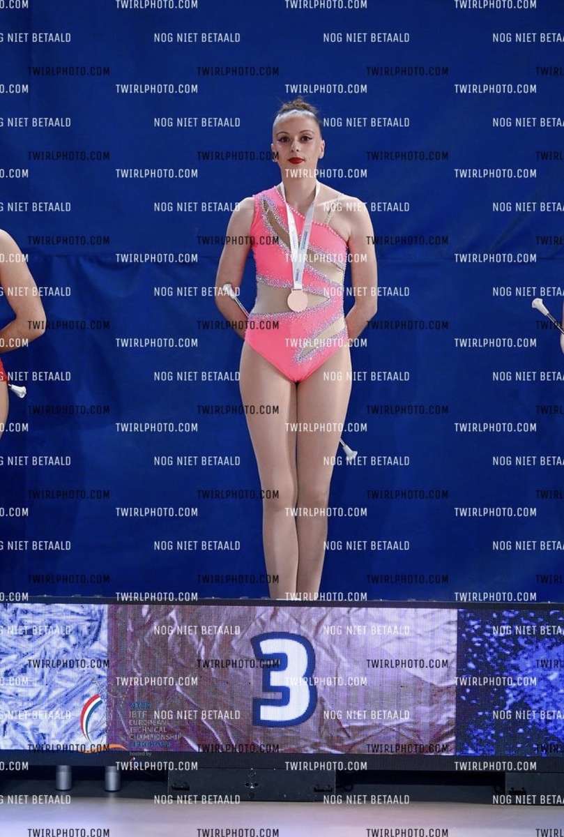 Chloé nous a offert une prestation magnifique en solo 1 bâton lors des préliminaires, et se classe dans le top 5 ce qui lui permet d'aller directement en finale. Lors de cette finale, elle nous refait la même prestation et elle se classe 3ème, médaille de bronze de la coupe des nations européenne en solo 1 bâton sénior B🥉